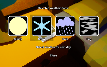 The first time you run the game the particles for some of the weathers won't activate, no idea why but it's something I'll be looking into soon.